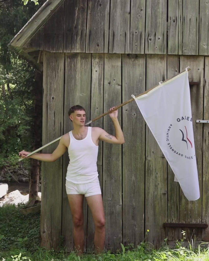 Kanotjera Adrian je spletena iz 100 % bombaža v tovarni na plaži v Omišu. Pletena je tubularno, kar pomeni, da nima stranskega šiva, ki bi praskal po koži. Da je čimbolj elastična, ima fina tanka rebrca. Je dovolj dolga, da ne leze izza hlač in ima ravno prav odprt izrez, da ramenski obroč lepo pride do izraza. Kanotjera Adrian daje polet! Le počasi in previdno z njim.