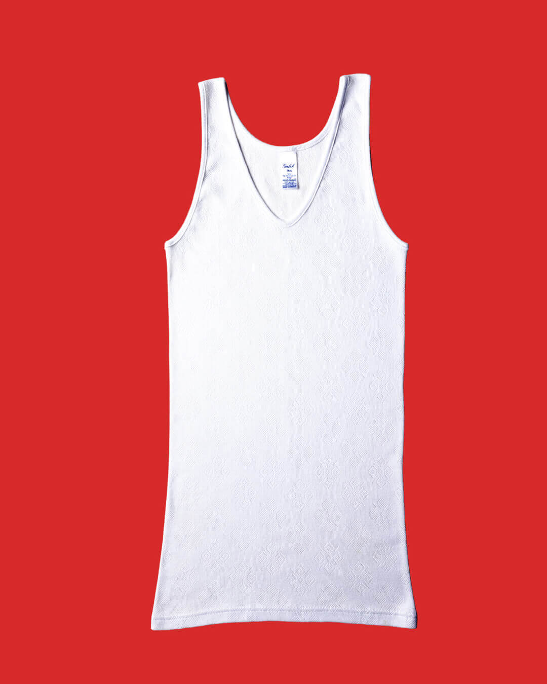 Spodnja majčka je spletena iz 100 % bombaža v tovarni na plaži v Omišu. Pletena je tubularno, kar pomeni, da nima stranskega šiva, ki bi te praskal po koži. Pletenje ima poseben slovanski, etno karo vzorček, ki kosu daje značilen duh. Posebna je tudi zato, ker skozi etno dizajn pa tudi občutek na koži prenaša znanje o negi telesa in lepotnih ritualih. Spodnja majčka Mili zato preverjeno daje polet. V njenem objemu se da res dolgo, zdravo in lepo živeti.